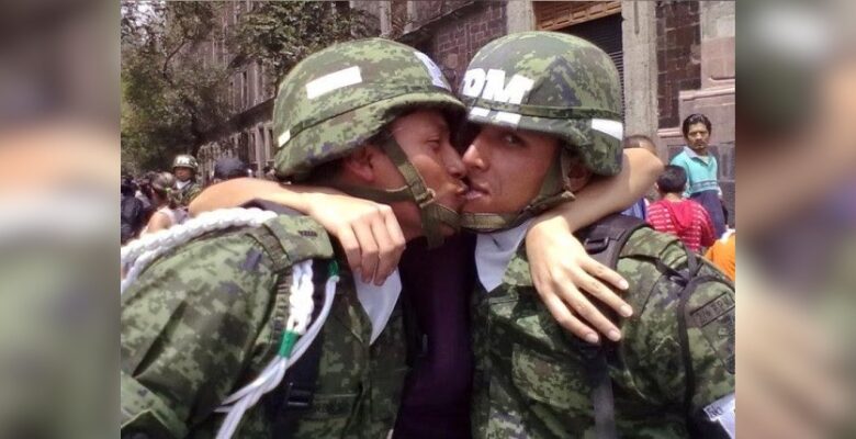 Dos elementos de la Guardia Nacional fueron captados dándose un beso de compas… probablemente confiados en que nadie los vería