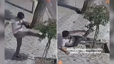 Captan a joven en estado de ebriedad peleando con un árbol; terminó perdiendo