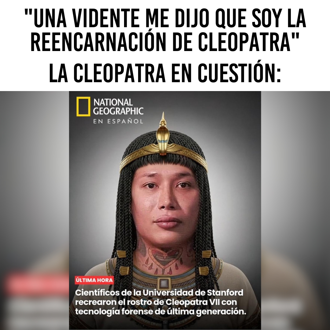 Tu amiga de Chimalhuacán ahora tiene más razones para pensar que es la “reencarnación de Cleopatra”. Con ayuda de tecnología forense de última generación, científicos de Stanford recrearon el rostro de Cleopatra VII… revelando que la Cleopatra de Hollywood nos mintió y en realidad estaba más cerca de parecerse a Cleo, el personaje de Yalitza Aparicio en Roma.
