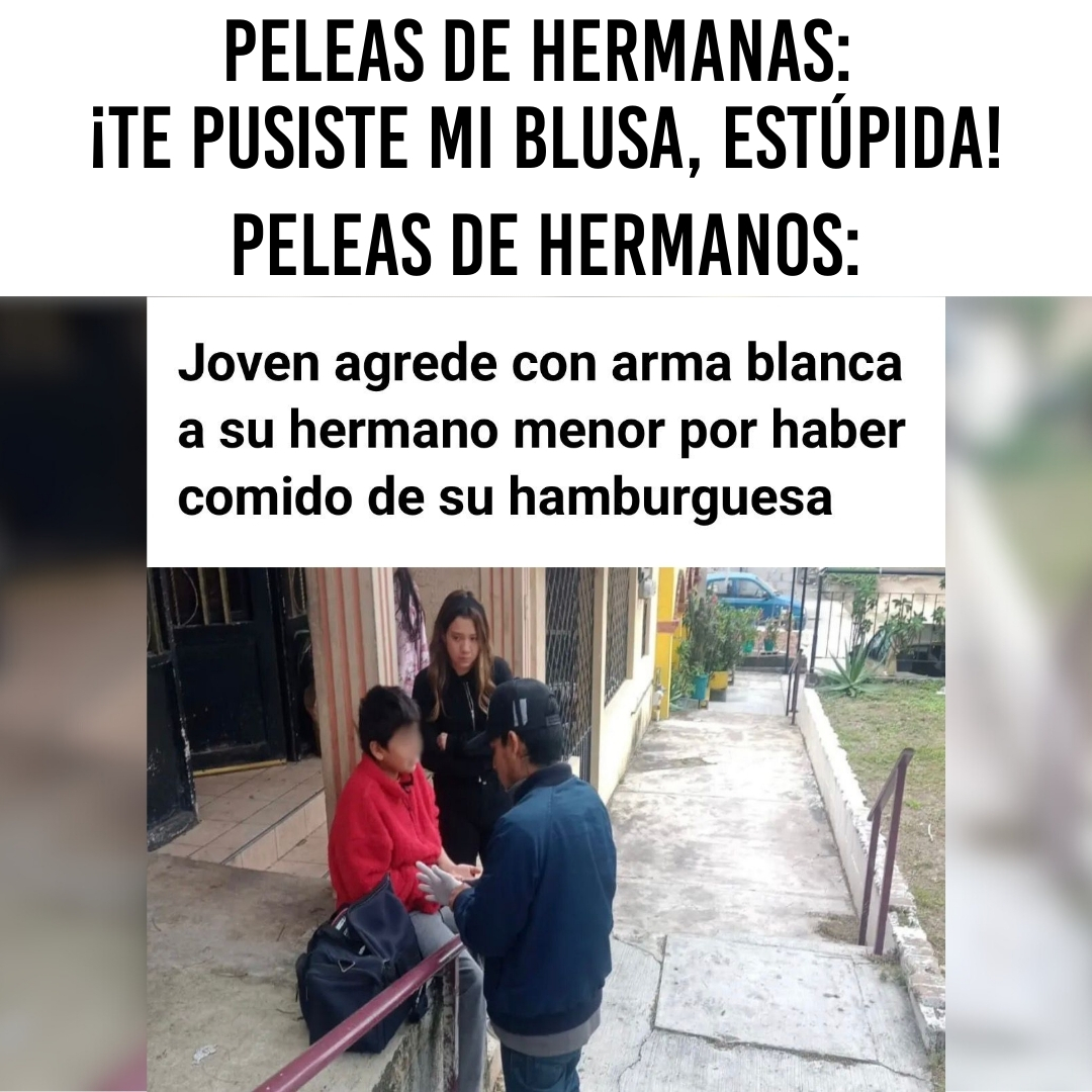 De los creadores de «ofrezco a mi hermana a la mafia rusa porque se comió el Gansito que dejé en el congelador», llega «intento acuchillar a mi hermanito porque estaba a punto de comerse mi hamburguesa».