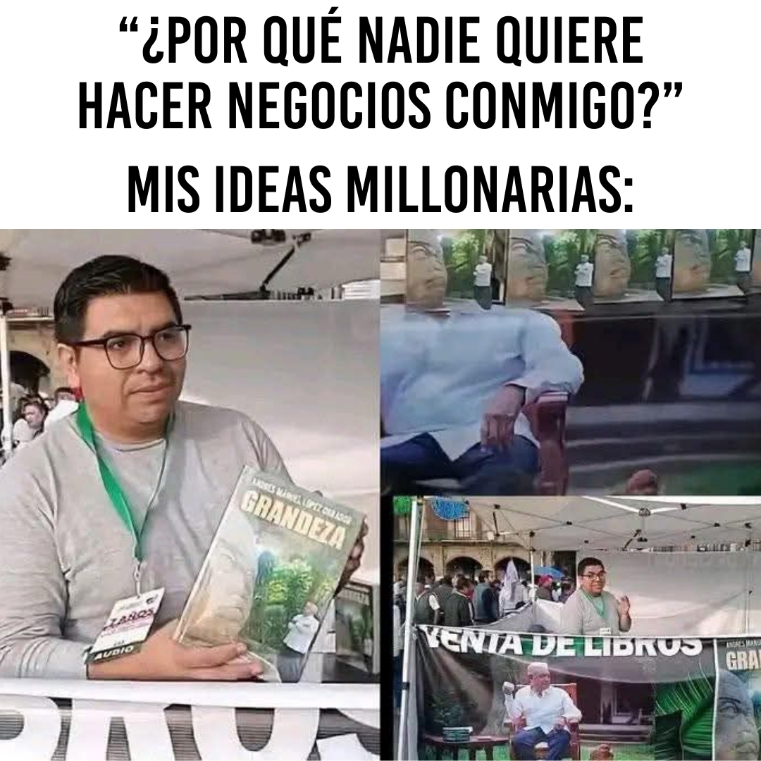 Un joven emprendedor intentó vender 10 mil ejemplares del libro de AMLO durante el mitin de Claudia Sheinbaum… pero no contaba con que los acarreados no leen ni la etiqueta del Boing que les dieron por presentarse en el Zócalo. Su mente de tiburón le dio para poner un stand con una lona publicitaria, pero no para anticipar que los asistentes no estaban dispuestos a pagar 450 pesos en lo que, muy probablemente, sea el papel higiénico más caro del mercado.