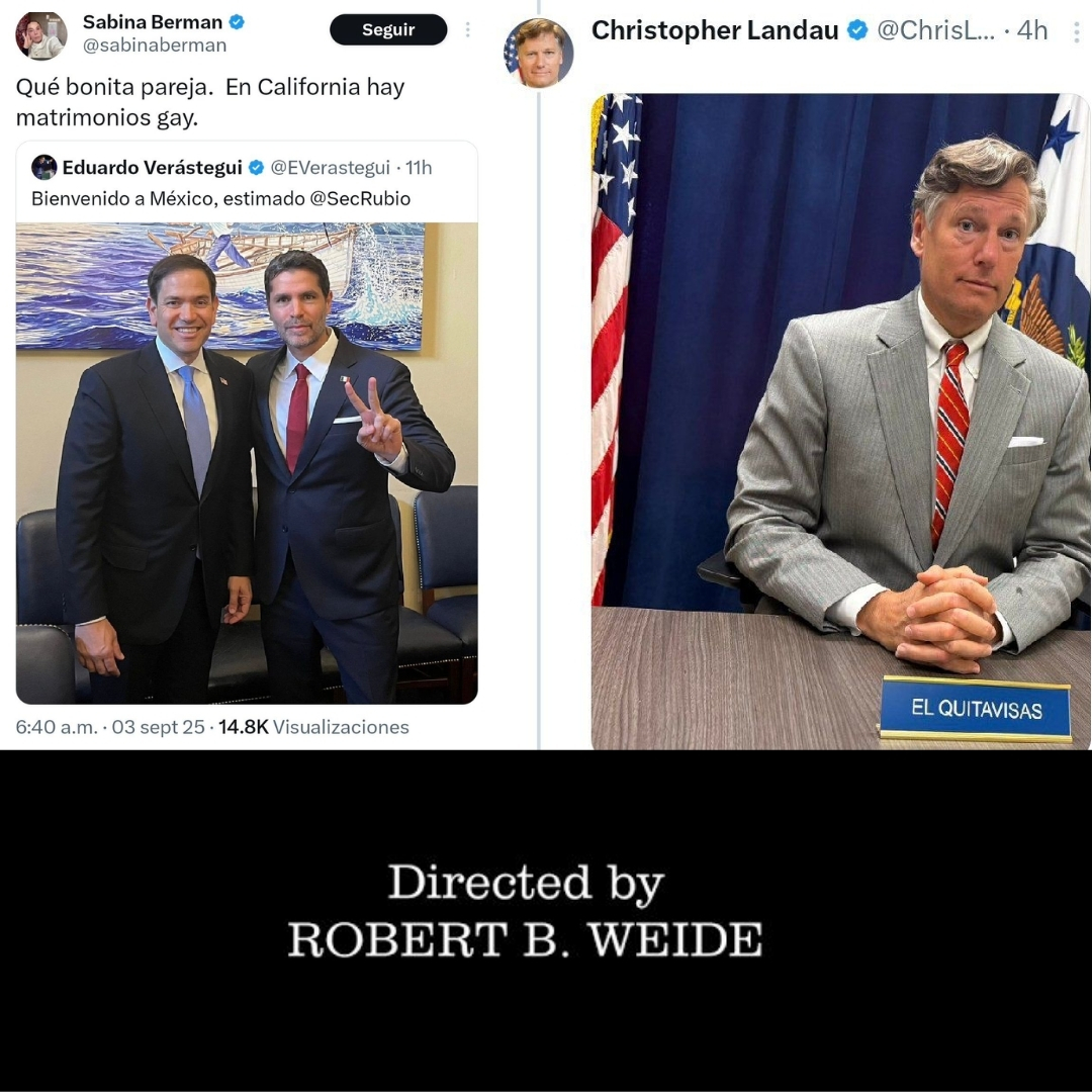 Esto luego de que Doña Comedias sugiriera que existe una relación gay entre Eduardo Verástegui y el secretario de Estado de EE. UU., Marco Rubio… publicación que no tardó en llegar a Christopher Landau, quien respondió con una amenaza sutil, pero efectiva: una foto en la que oficializa su mote de «El Quitavisas».