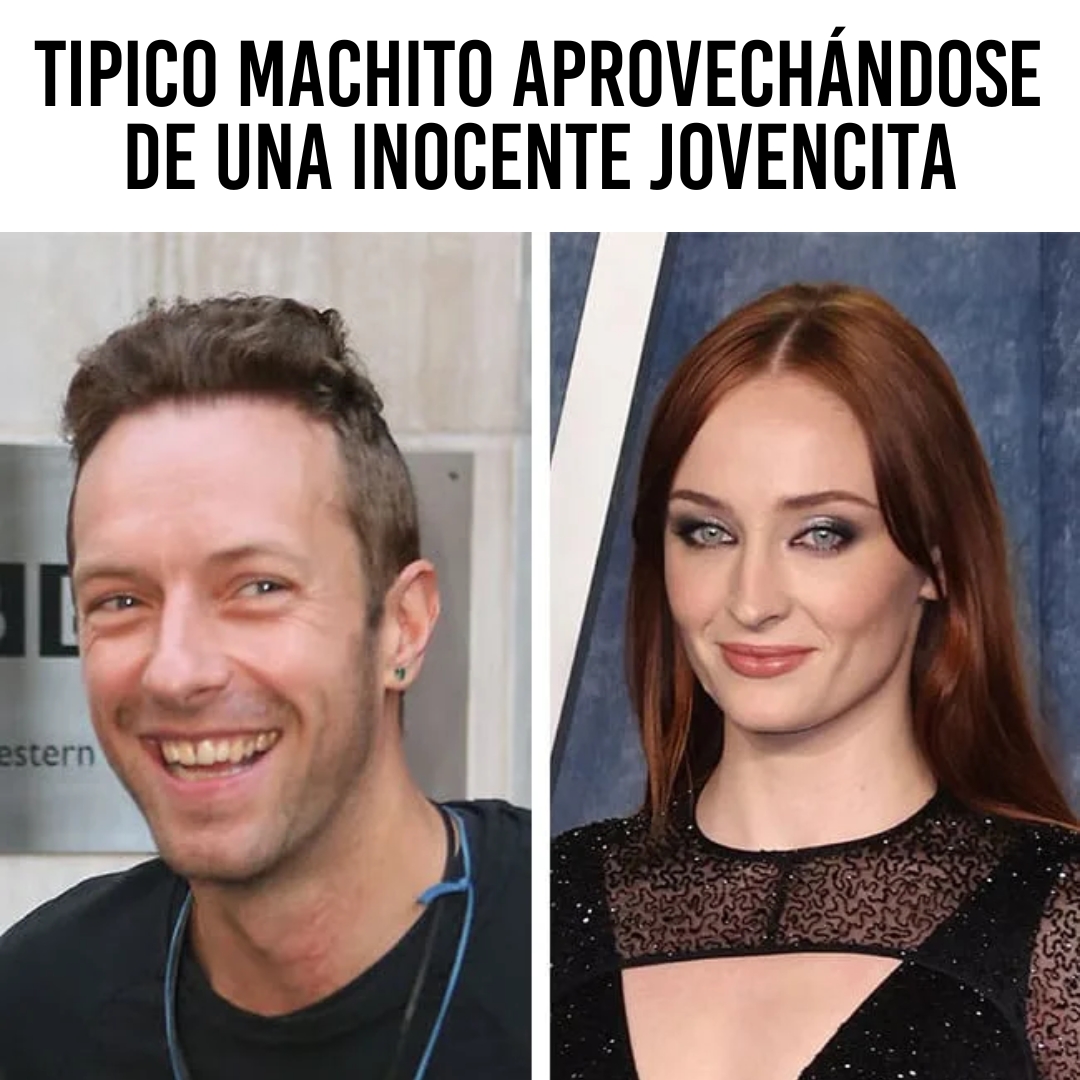 Chris Martin, vocalista del conjunto musical Coldplay (Juego Frío, en español), ha conseguido, con mentiras y labia, seducir a Sophie Turner, actriz famosa por interpretar a Sansa Stark en la serie Juego de Tronos, quien apenas está por entrar a la adolescencia el próximo febrero, cuando cumpla 30 años.